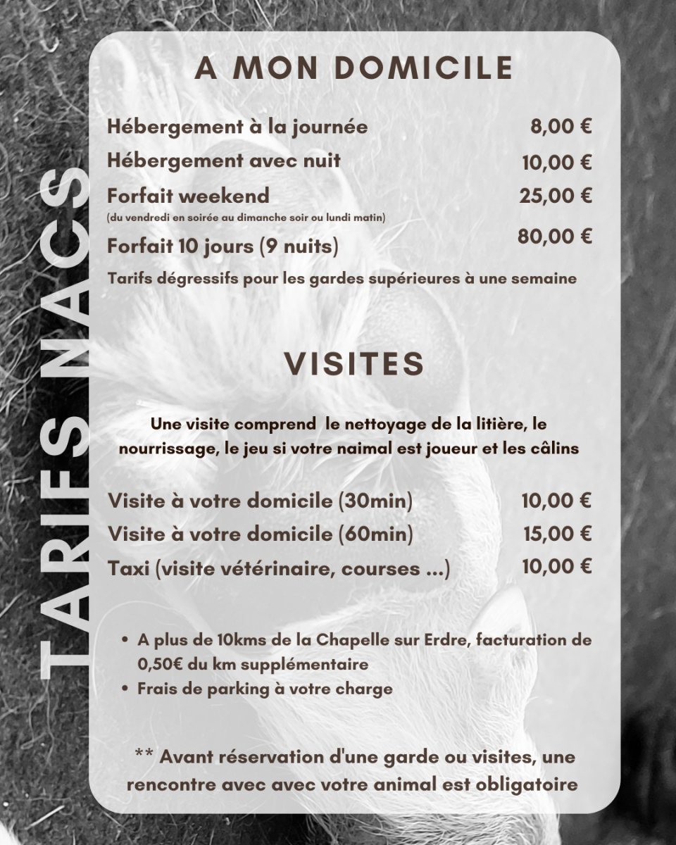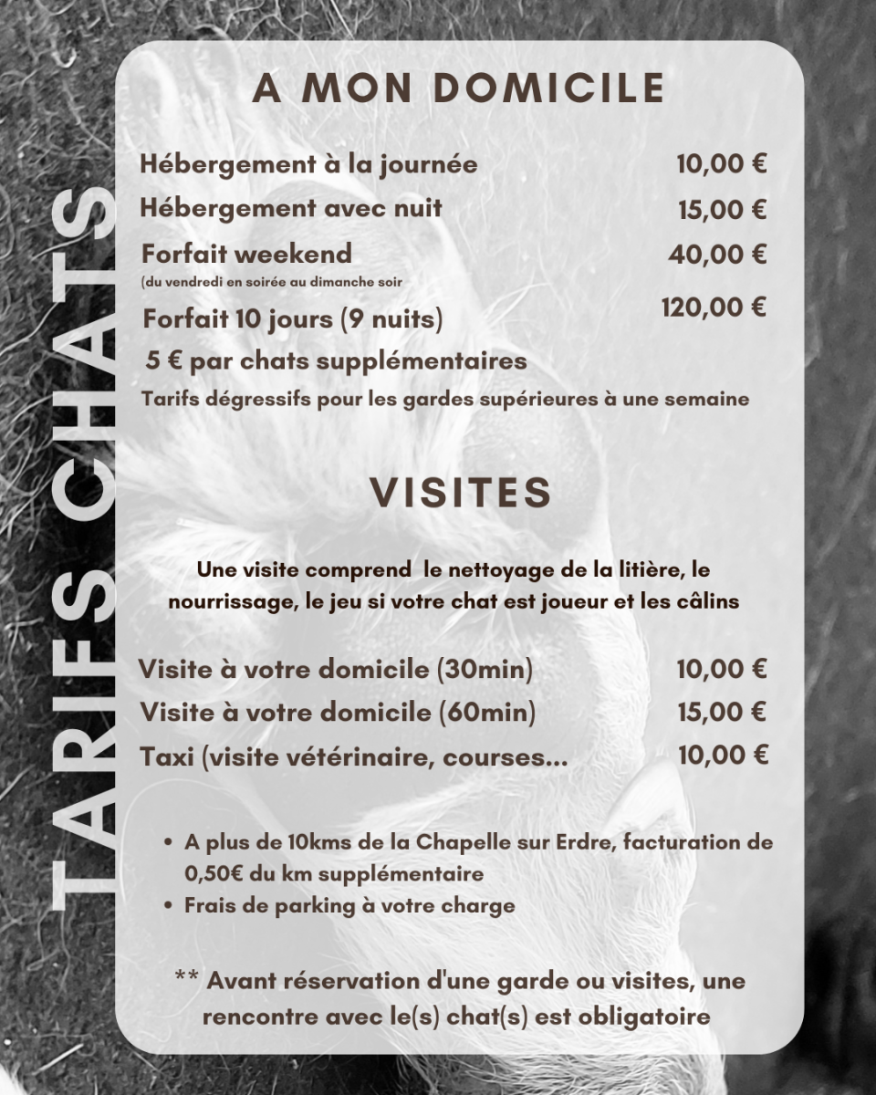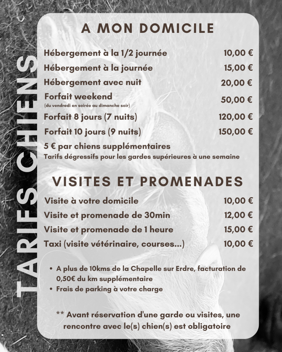 Tarifs de mes prestations des services de garde pour animaux